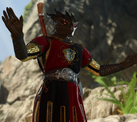 He's a Paladin Oathbreaker who loves a good adventure and battle.He's usually accompanied by his Fighter Tiefling friend "Dish of The Bowl"A former Paladin turned Oathbreaker, he fights for what he truly thinks is right. After winning a battle against a group of Githyanki, he was confronted by the Oathbreaker Knight.He was given another chance of keeping his Paladin status for after long consideration decided against it and embraced his Oathbreaker name. He thought his Ancient's view of whats right and wrong was sckewed, he knew his plan was one leading to the greatest of the people and his surroundings.Now he follows his own judgement and his only, following what he believes is right for the world and constantly seen to be fighting for the innocent people of Baldur's Gate.